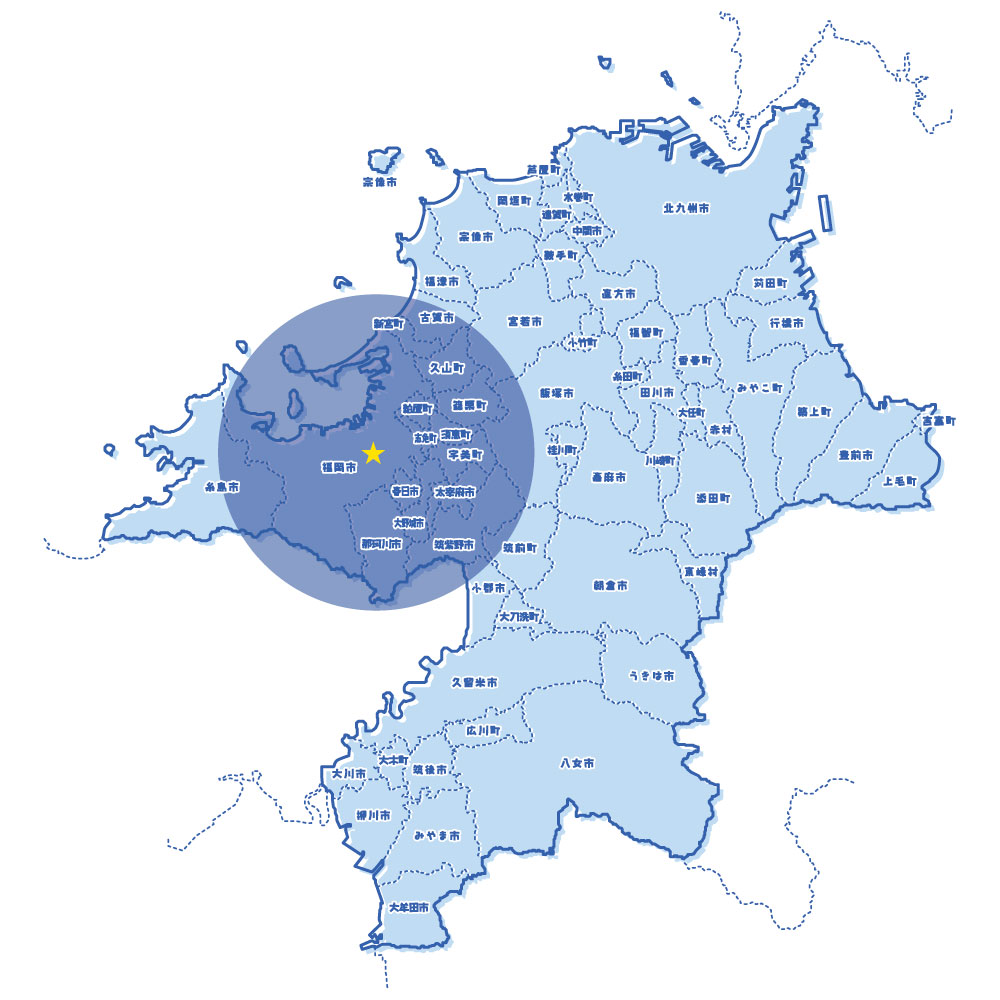 ※中央区天神2丁目を拠点とした距離で測定します。範囲外の訪問も可能ですので、ご相談ください。