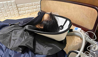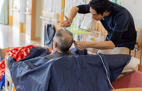 お客様の状態に合わせて、無理のない体勢でシャンプーさせていただきます。快適で心地よいシャンプーを是非お試しください。